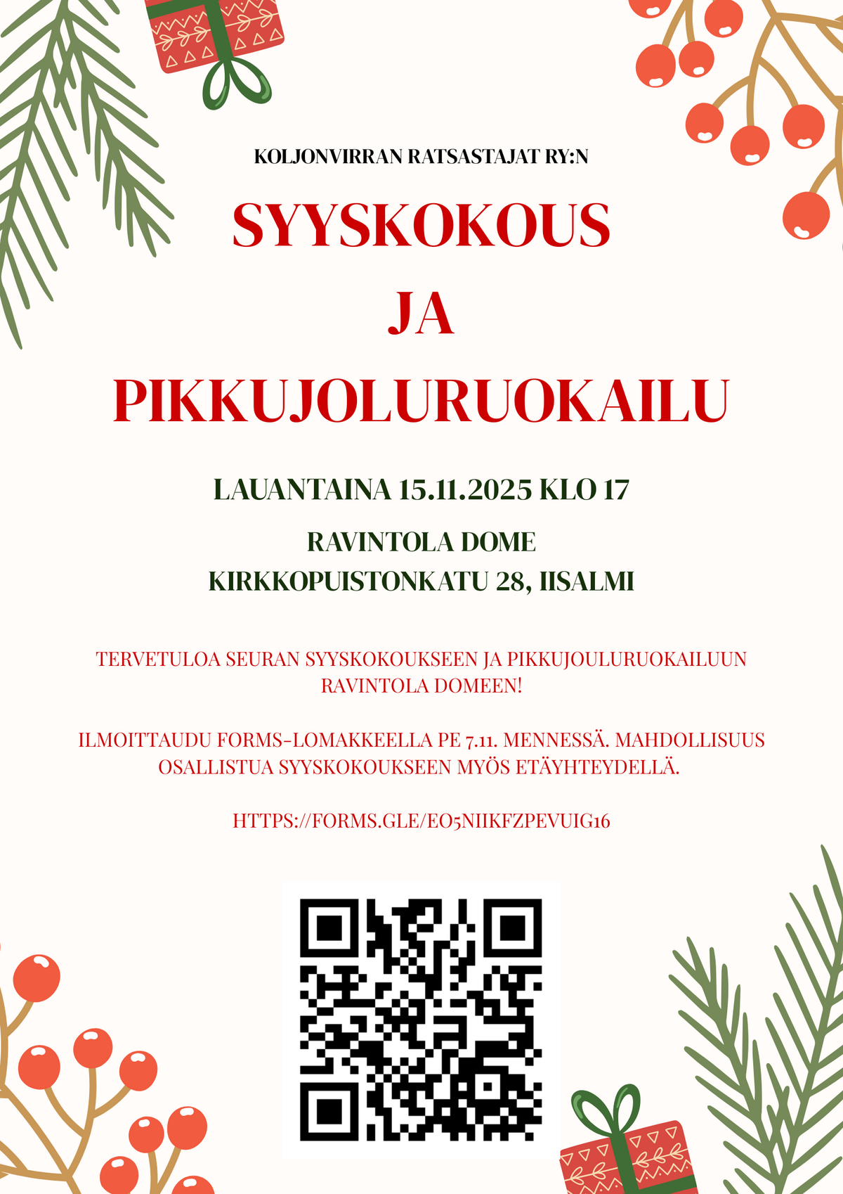 Syyskokous ja pikkujouluruokailu 15.11. klo 17!